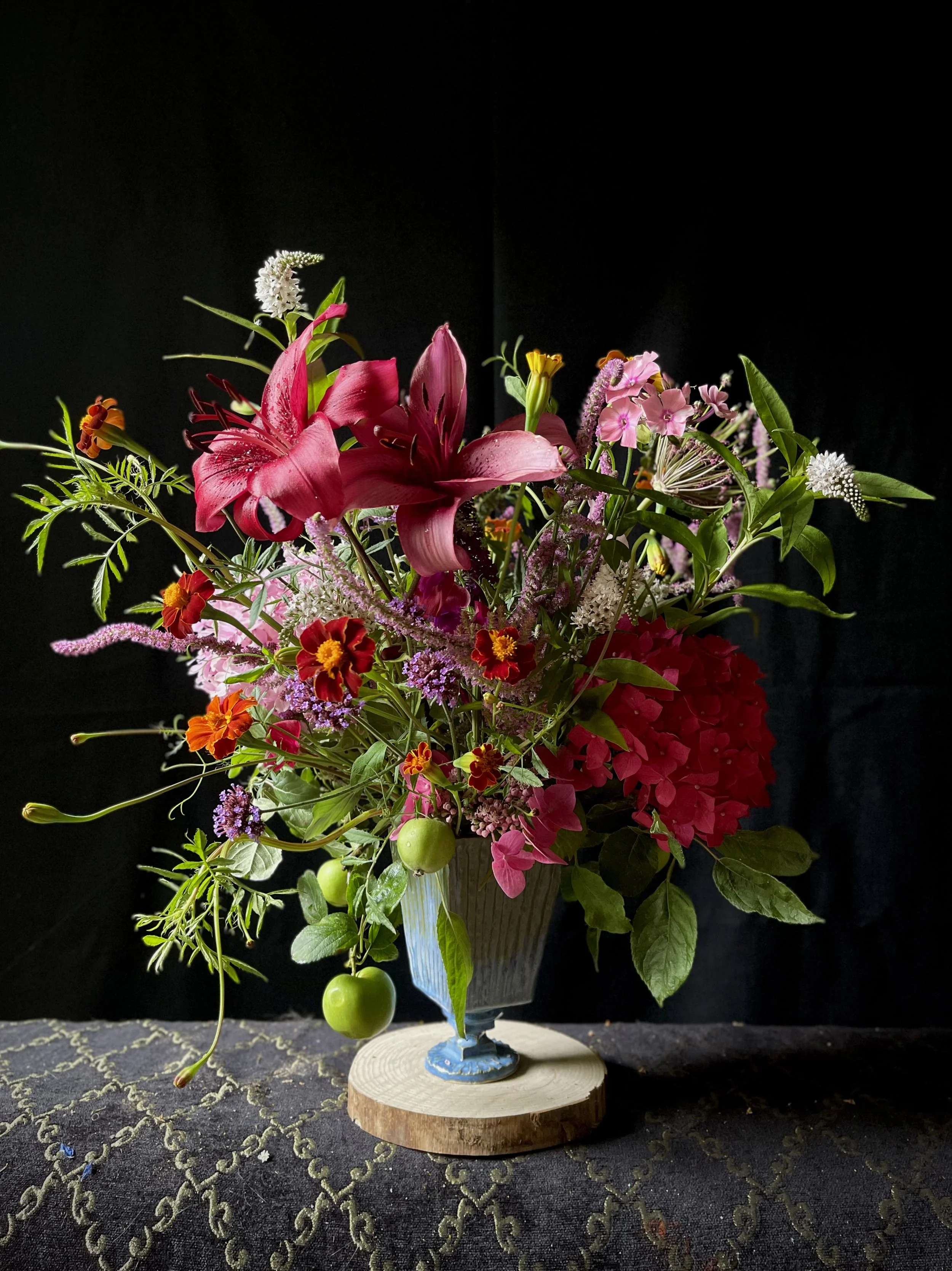 I grow flowers in my garden, experimenting new types of plants every year. I have come to cherish the naturalistic approach to flower arrangement mainly because I love gardening as much as floral design. With the flowers I grow, I create pre-ordered bouquets and host flower workshops here in Heemstede, Netherlands.