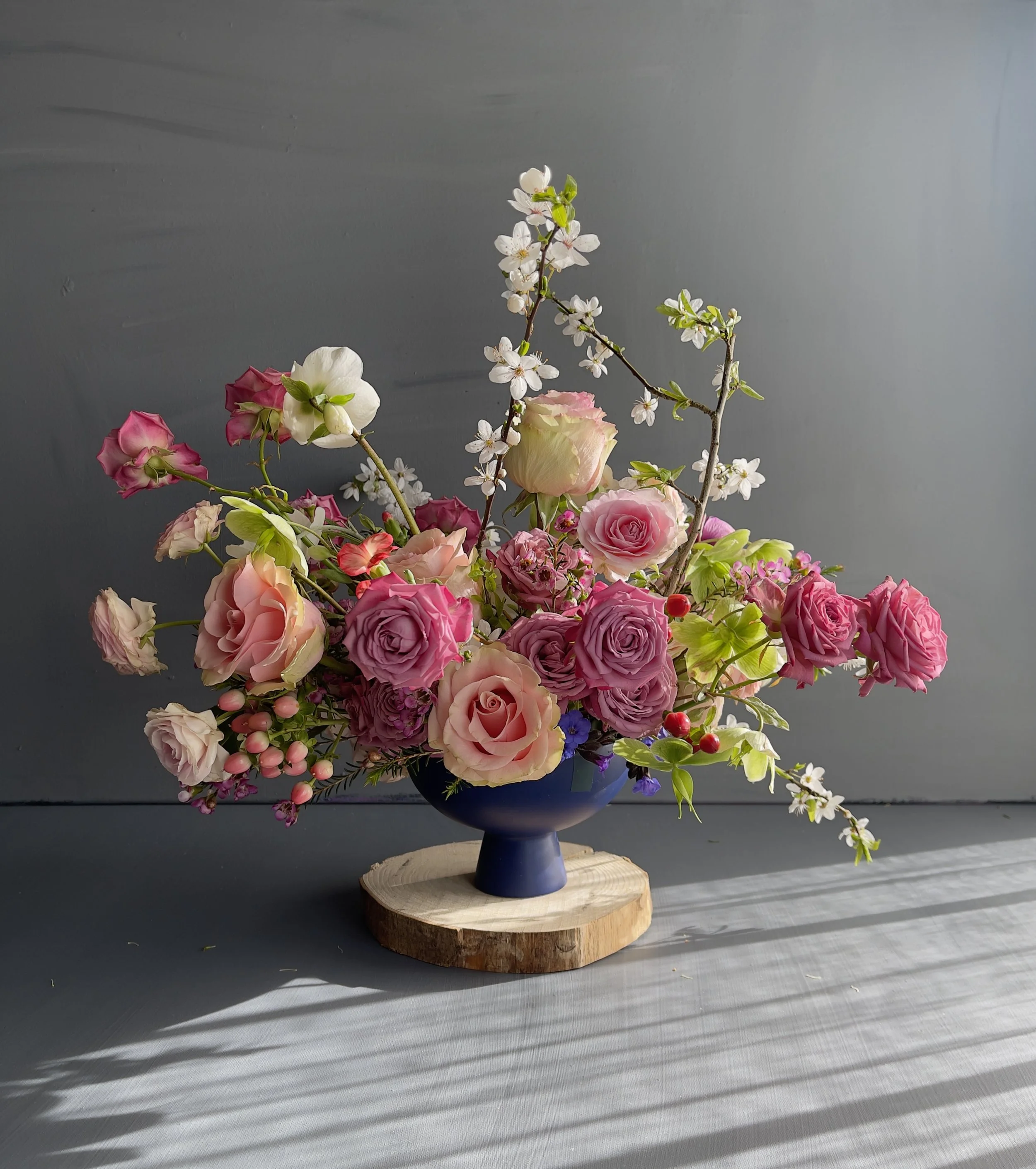 Our most popular workshop. Very practical yet unique way of arranging flowers for the middle of a table or a pedestal. Let your bouquet ‘float’ on a bowl!