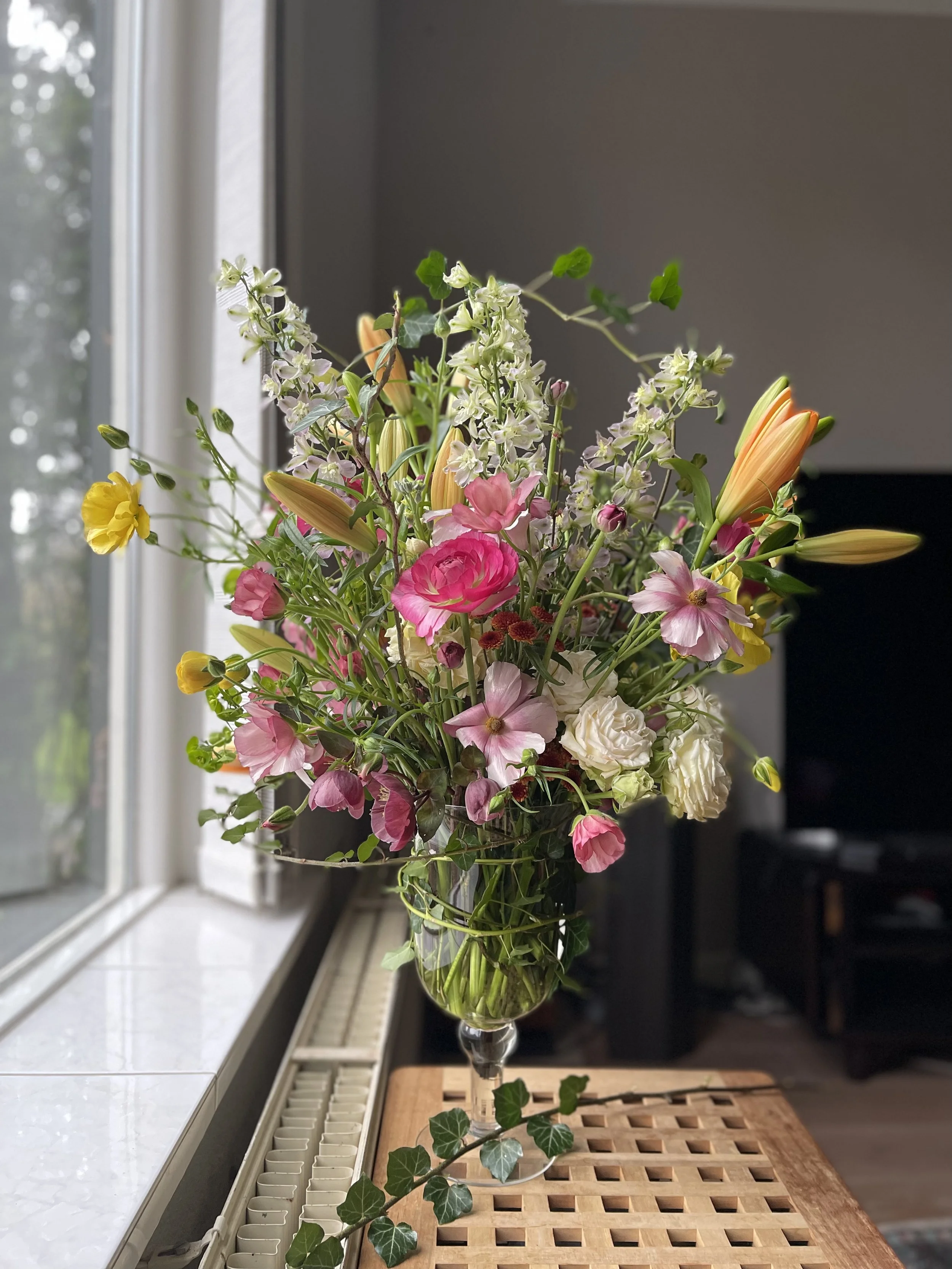 광고 마케팅을 90년대 중반부터 해온 저는 코로나 무렵 네덜란드를 본사에 둔 대기업에 다니는 마케팅 팀장이었습니다. 코로나 기간 중의 재택근무 정책으로 2년 이상을 회사에 거의 하루도 안 가고 안방에서 근무를 하던 그때 그렇게 남는 시간을 정원에 쏟아부었습니다. 미루던 정원 관리를 할 여유가 갑자기 생겨 낮이 긴 봄-여름을 이용해 열심히 정원에서 꽃을 길렀죠. 식물에 대해 배우느라 책도 사고 온라인 강의도 듣던 때였어요. 그렇게 꽃이 피기 시작하자, 그게 꽃꽂이 열병이 되더니 플로리스트가 되어야겠다는 결심으로 이어졌습니다. 좀 특이하게, 정원에서 기르는 꽃을 쓰는 방식으로 시작을 해서인지 그 후에도 저는 꽃을 구하기 위해서 주변의 꽃농장, 컷팅가든을 주로 이용하게 되더라고요. 물론 사서 쓰는 경우도 많지요, 특히 겨울에는요.
